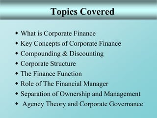 When the board of directors are elected to staggered terms d. The agency relationship in corporate finance occurs when the shareholders hire a manager to run their company. Agency Problems by Sajna Fathima 2.
